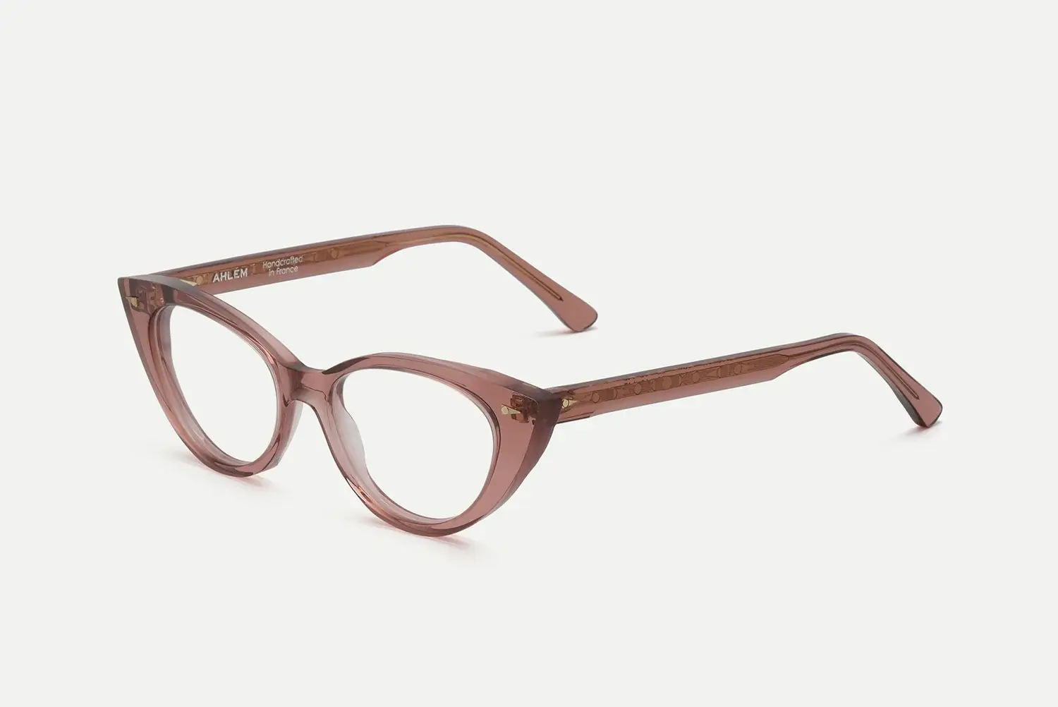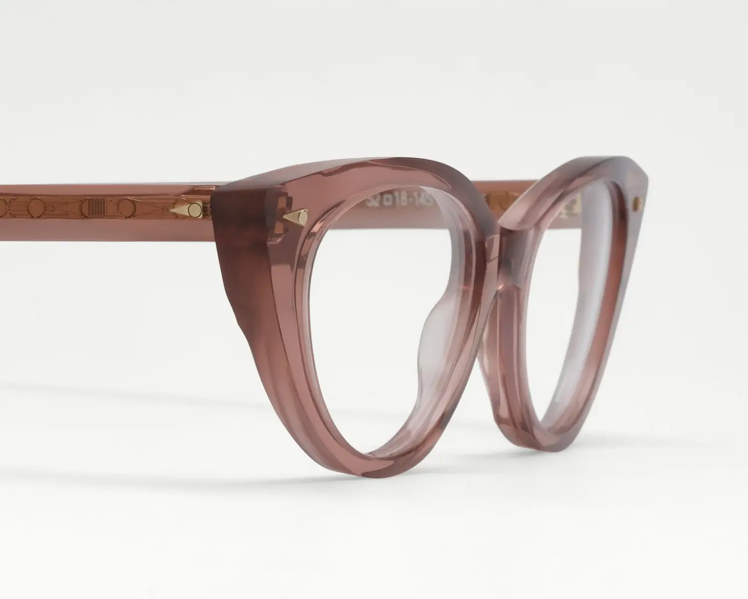 透け感のあるアセテートが光を柔らかく拾い、
