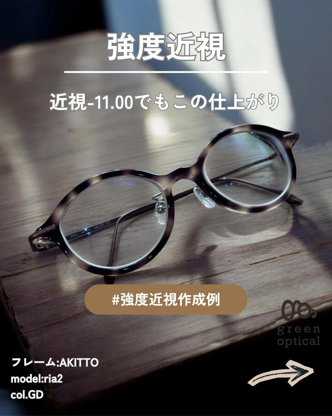 強度近視-11.00のメガネ仕上がり実例をご紹介。