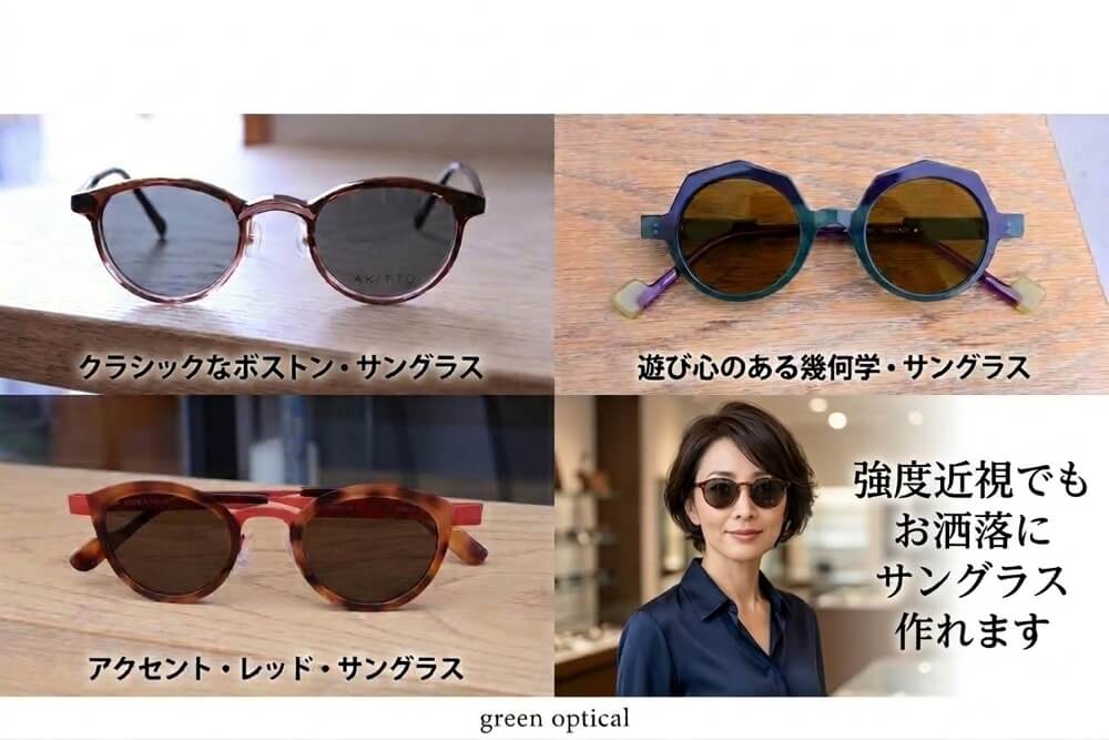 レンズの厚みが気になる方へ。お洒落でスッキリ仕上がる「度付きサングラス」の秘密。 Posted on 2026年3月18日 in AKITTO, anne et valentin, 偏光レンズ, 強度近視, 調光レンズ ...